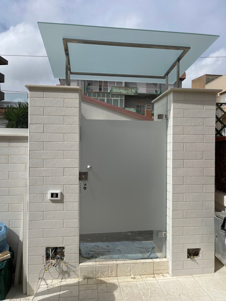 Proteggi le tue aree esterne con stile. Le nostre pensiline e tettoie in vetro su misura uniscono design sofisticato e praticità, offrendo soluzioni eleganti per coprire e definire i tuoi spazi all’aperto.